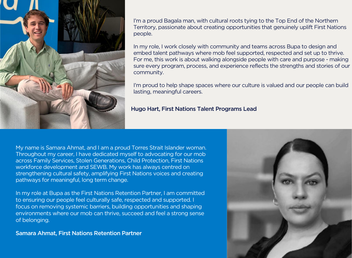 Want to know more about how the process works at Bupa before hitting apply? Download our "What to expect in the Bupa recruitment process" PDF here. With handy resume writing and interview tips, plus insights into what documents you need to work at Bupa, everything you need to get ready to apply is there. If you would like some support during the process, or have any questions you can email firstnations@bupa.com.au.